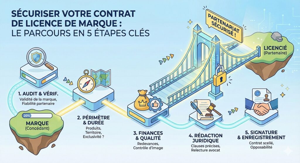 - La rédaction du contrat de licence impose une rigueur extrême quant aux clauses essentielles, aux conditions financières et à la surveillance de l’usage, car chaque oubli structure ou mine le rapport des parties.