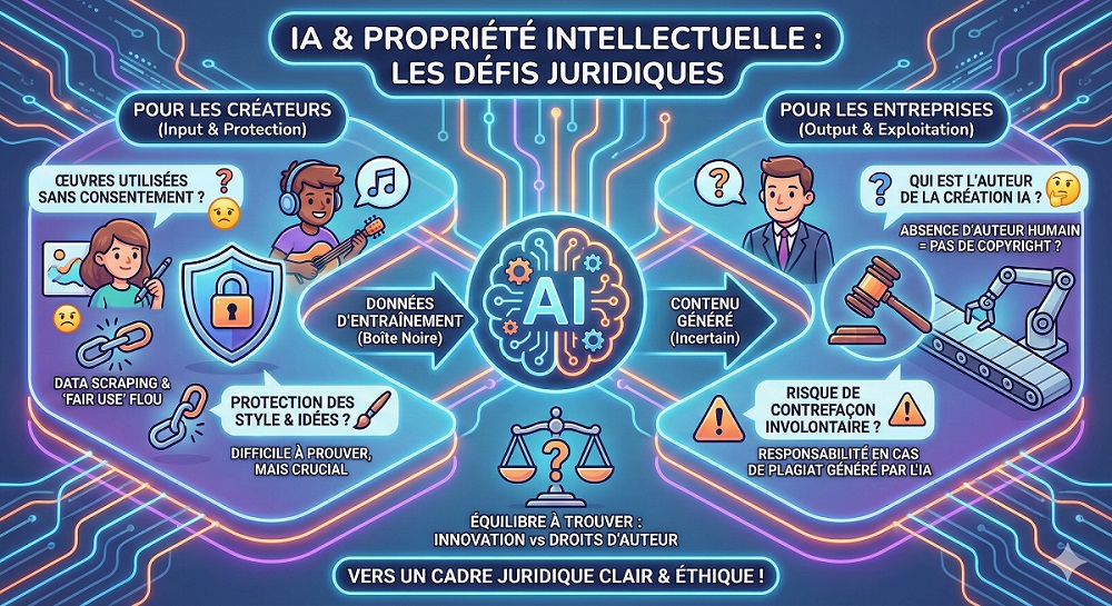 | Vérification des données sources | Contrôle des droits sur les contenus utilisés pour entraîner l’IA | Limiter le risque de contentieux pour contrefaçon |